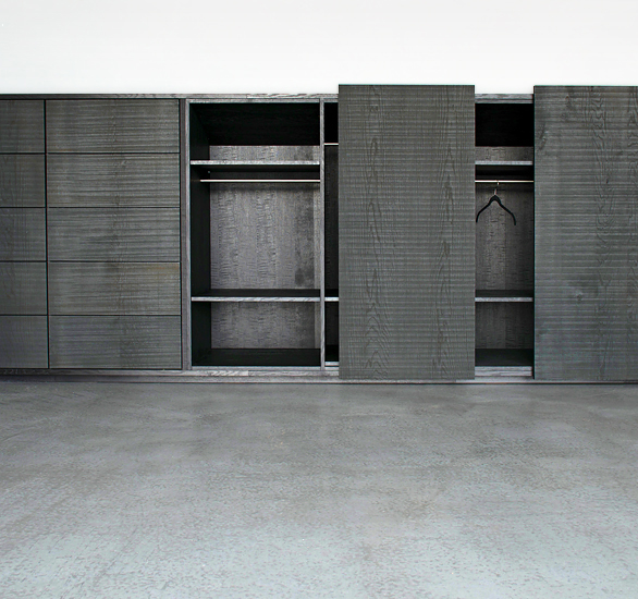 < > leicht lassen sich fronten verschieben, schubladen durch antippen öffnen. der blick in den innenraum zeigt sorgfalt und perfektion.
